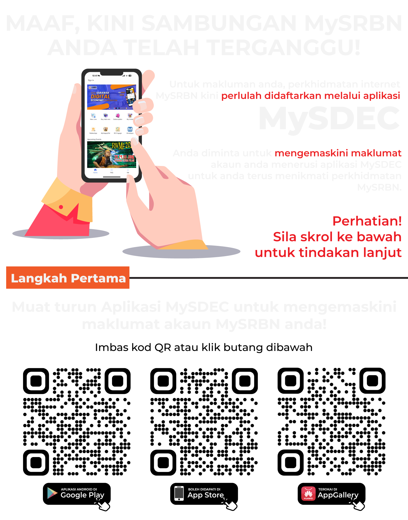 Sila hubungi Talian Khidmat Pelanggan kami dan kongsikan Nombor IMSI anda kepada kami untuk tujuan mengemaskini maklumat anda